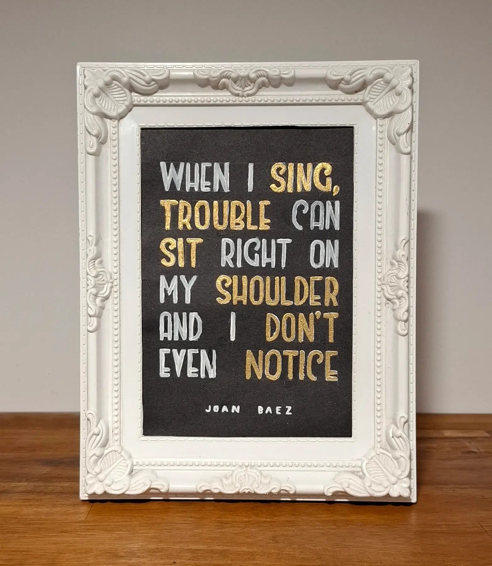 I illustrated this quote by Joan Baez, an American singer, songwriter, musician, and activist for the 'Women's Jazz Tribute' event at Annandale Creative Arts Centre in 2020. I'm very happy that it now sits very proudly in a friend's home.